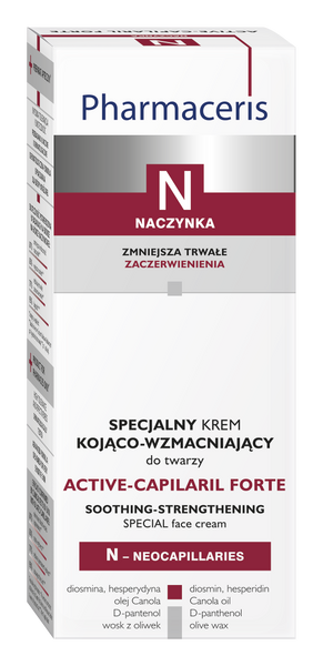 Preparat o wysokim stężeniu mikronizowanej diosminy i hesperydyny zapewnia wyjątkową skuteczność w niwelowaniu trwałych zaczerwienień oraz przeciwdziała ich utrwalaniu. Ich synergiczne działanie wzmacnia ścianki naczyń krwionośnych chroniąc je przed dalszymi uszkodzeniami i pękaniem. Masło Shea, naśladujące lipidową osłonę skóry oraz D-pantenol koją i łagodzą podrażnienia oraz intensywnie wspomagają regenerację naskórka. Formuła wzbogacona w olej Canola, wosk z oliwek oraz glicerynę zapewnia odpowiedni poziom natłuszczenia i nawilżenia przywracając skórze gładkość i elastyczność. SPOSÓB UŻYCIA: Przygotować skórę do nałożenia kremu oczyszczając ją preparatem z serii Pharmaceris N. Następnie rozprowadzić krem na skórze twarzy i szyi. Stosować codziennie rano i wieczorem. Stanowi doskonałą bazę pod makijaż. SKŁADNIKI AKTYWNE: Diosmina - wzmacnia ścianki naczynek krwionośnych, zapobiega ich pękaniu oraz zabezpiecza przed uszkodzeniem. Hesperydyna - działa przeciwutleniająco, wzmacnia naczynia krwionośne oraz zabezpiecza je przed uszkodzeniami. Olej Canola - bogaty w naturalną witaminę E ma właściwości łagodzące oraz przeciwzapalne. Zmniejsza objawy przesuszenia naskórka. D-pantenol - o właściwościach kojących i łagodzących, zmniejsza tendencję do nadwrażliwości skóry. Wosk z oliwek - jest łagodnym emolientem, odżywia i nawilża skórę. Masło Shea - naśladuje strukturą naturalną lipidową osłonę skóry, działa łagodząco i odżywczo na naskórek. Zmniejsza tendencję do rumienia i pojawiania się nowych naczynek. Podmiot odpowiedzialny za ten produkt na terenie UE