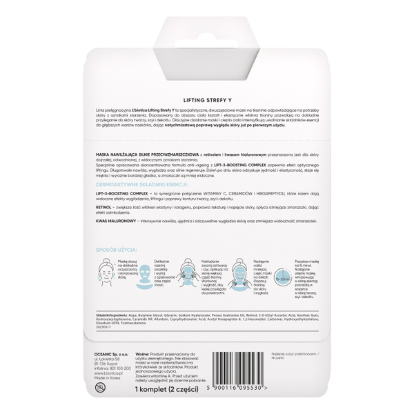 L'BIOTICA Lifting Strefy Y Nawilżająca maska do twarzy silnie przeciwzmarszczkowa 1 szt.